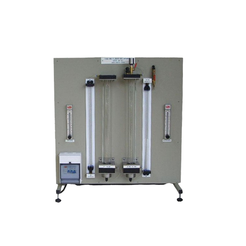 This bench top apparatus is designed for a study of fluid bubbling phenomena in fixed and fluidized beds of solid particles.