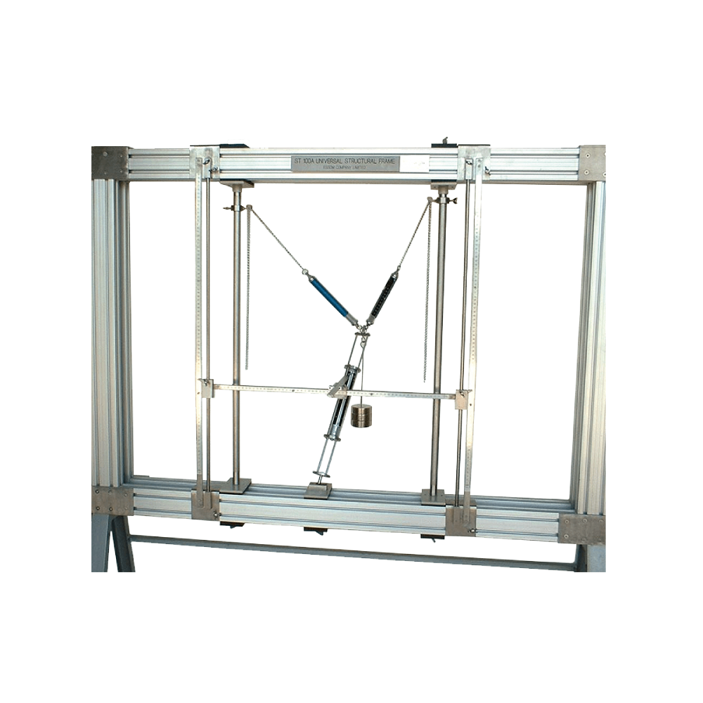 The equipment demonstrates the use of tension coefficients in resolving three dimensional forces. It is to be used with ST300 Universal Structural Frame (separately supplied). A space frame is constructed from two tension members and one compression member. Each member has a…