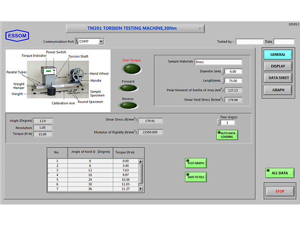 This is a bench top educational machine for torsion test of small specimens. This torsion testing machine consists of two parallel stainless steel tubes fixed together at both ends. At one end is a worm gear reducer where a torsion…
